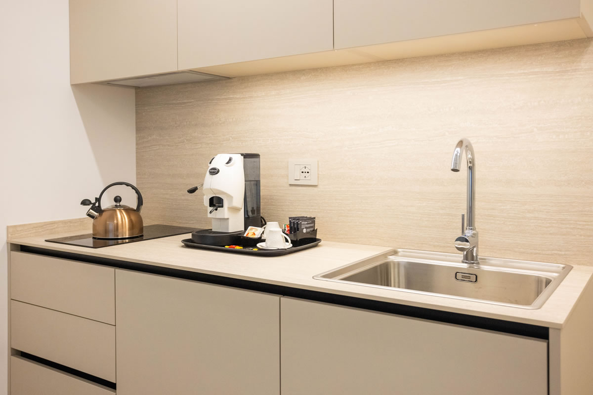 I nostri appartamenti (35 mq circa) ideali per le famiglie, offrono un accogliente salottino con divano letto e TV, un ingresso indipendente con cucina attrezzata dotata di frigorifero la macchina del caffè e il bollitore, il bagno e la camera padronale separata da eleganti porte scorrevoli.