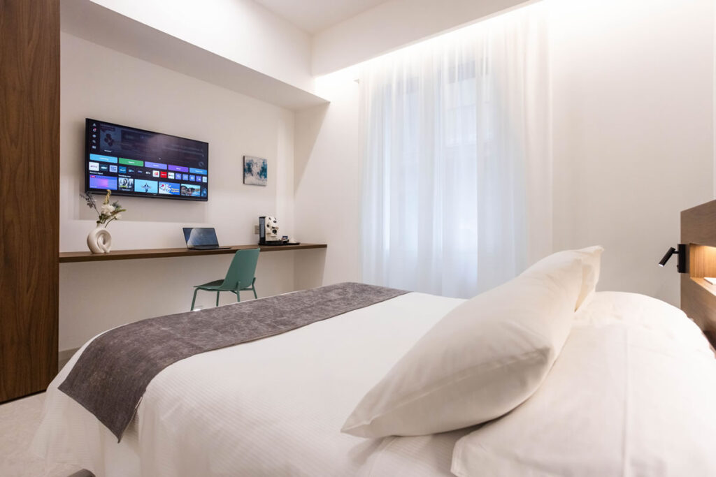 Nora’s Suites offre appartamenti spaziosi ed eleganti, ideali per famiglie o soggiorni più lunghi, pensati per combinare l’indipendenza di una casa privata con il comfort e la qualità di un soggiorno boutique.