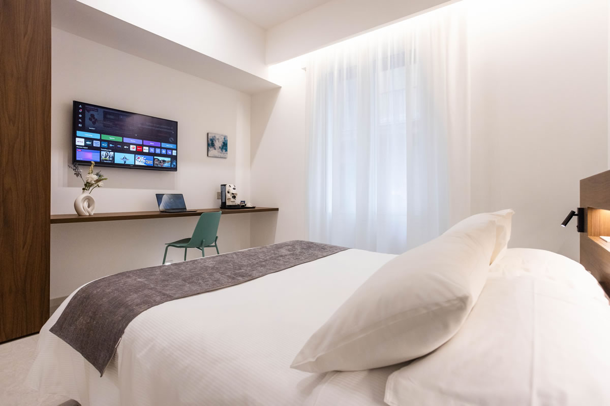 In alternativa, le nostre Queen Rooms offrono un ambiente più intimo e raffinato, con interni contemporanei e tutti i comfort essenziali, tra cui bagno privato, minibar e macchina da caffè.